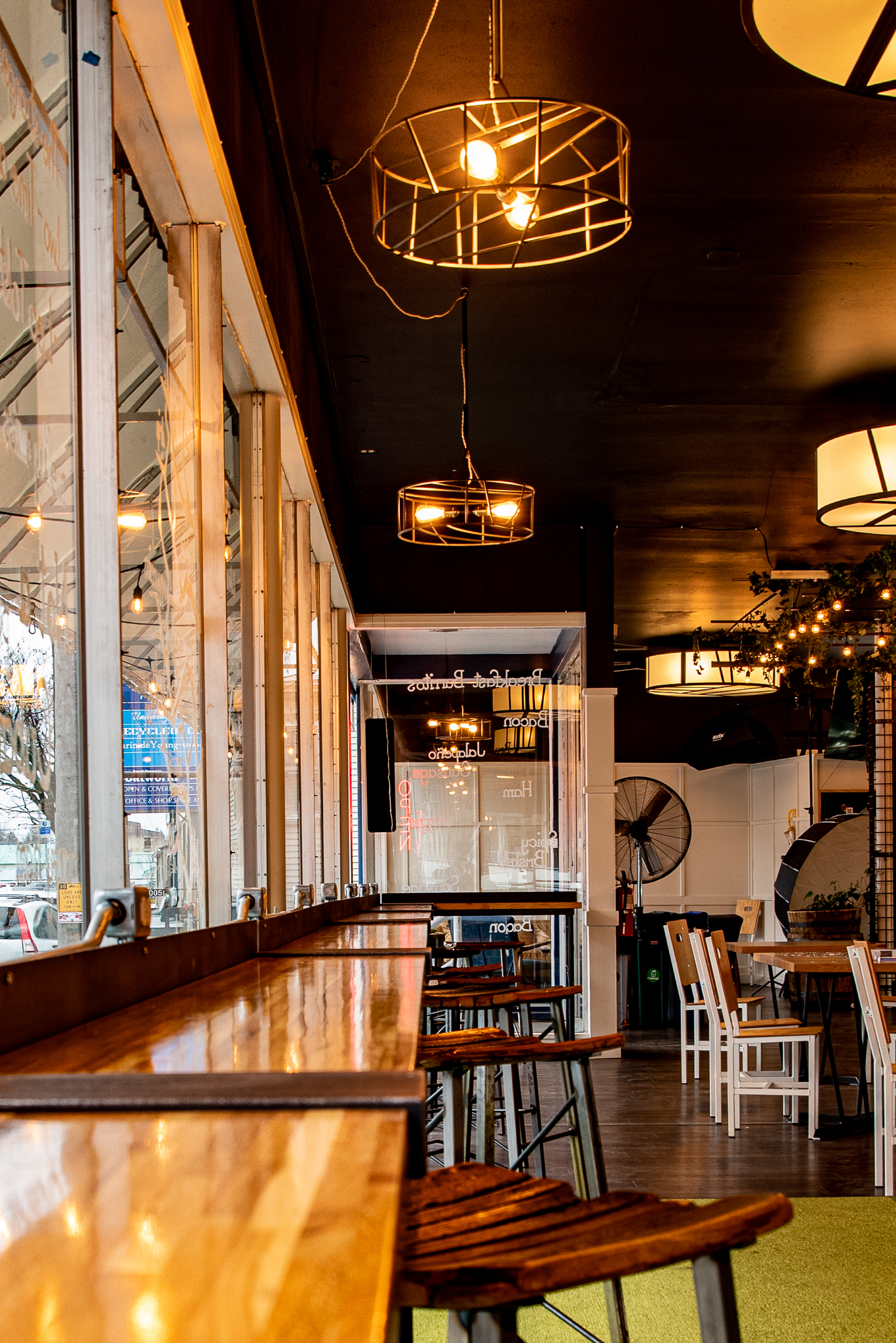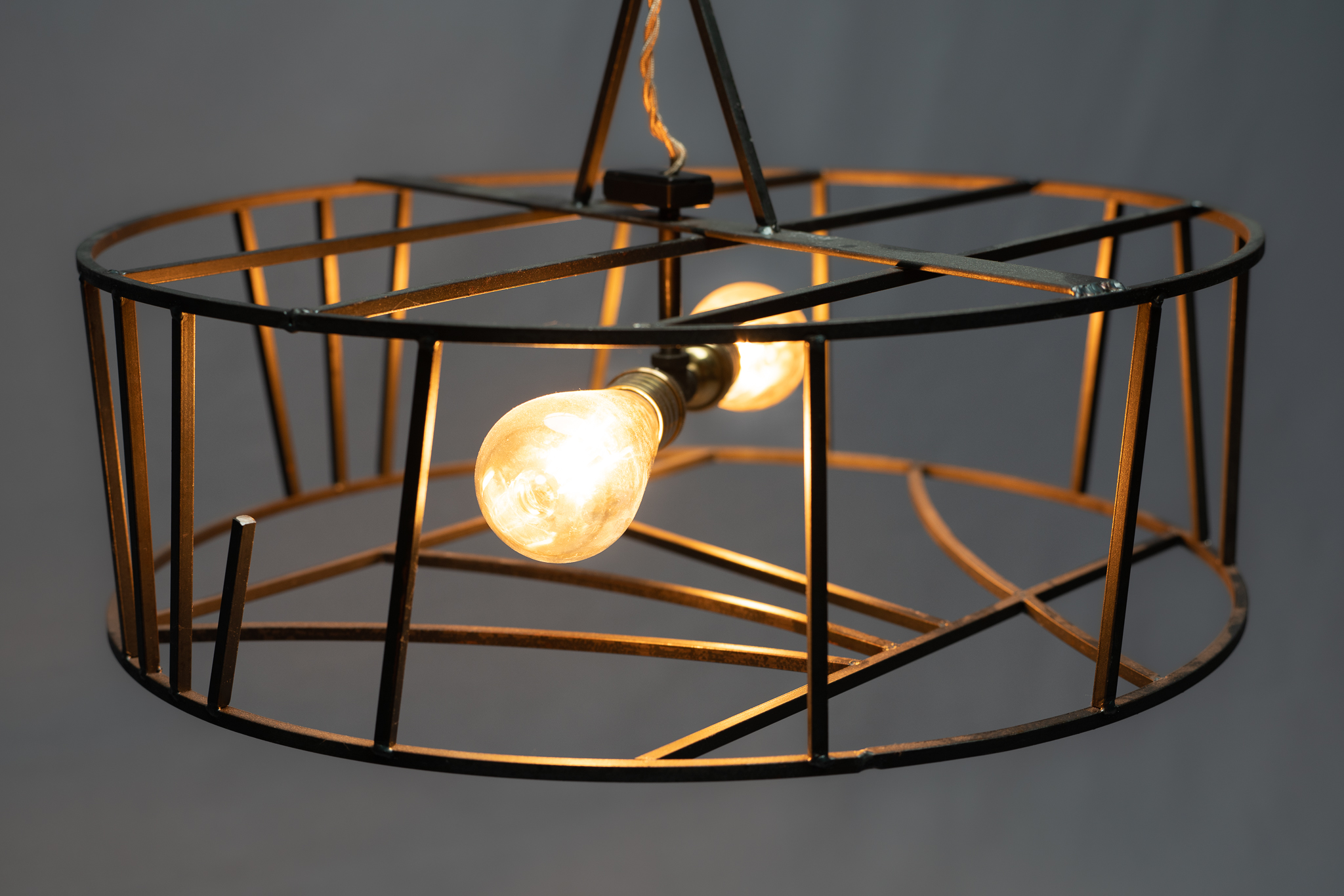 This light could fit into any architectural setting. It’s delicate industrial steel frame fills the space